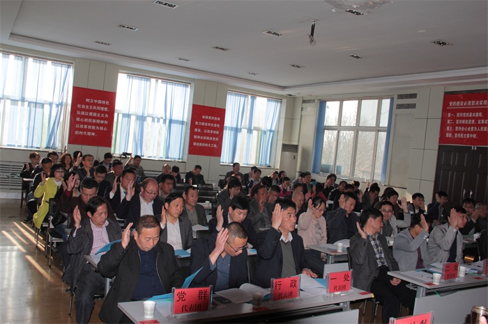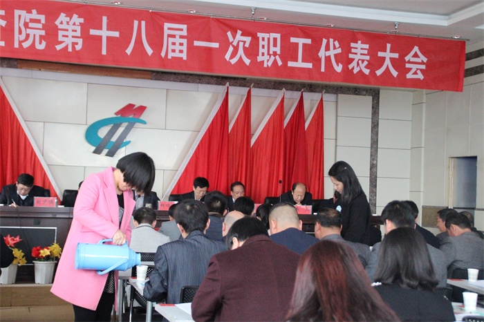 职工们正在聚精会神听取行政工作报告